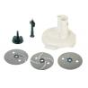Réalise les 5 fonctions clés grâce aux 3 disques réversibles (Râper fin - Râper gros - Trancher fin - Trancher gros - Gratter).